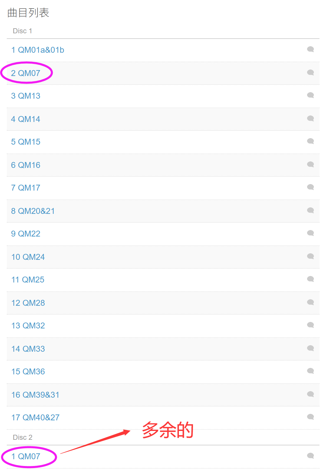 如上图所示,第一次在bangumi上给唱片添加曲目,不太熟悉,不小心吧第2曲弄到了「Disc 2」,想删却没有权限